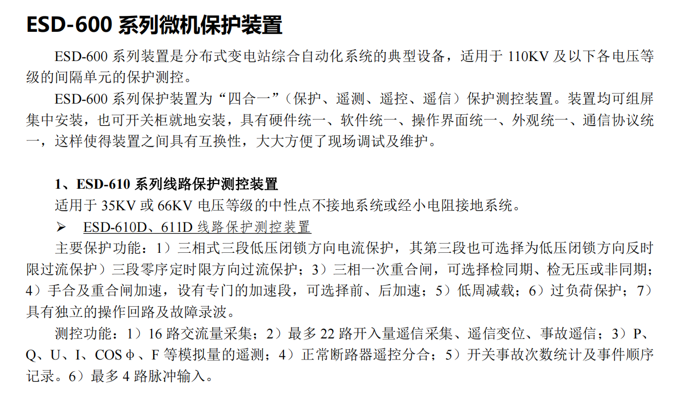 ESD-600系列微机保护装置