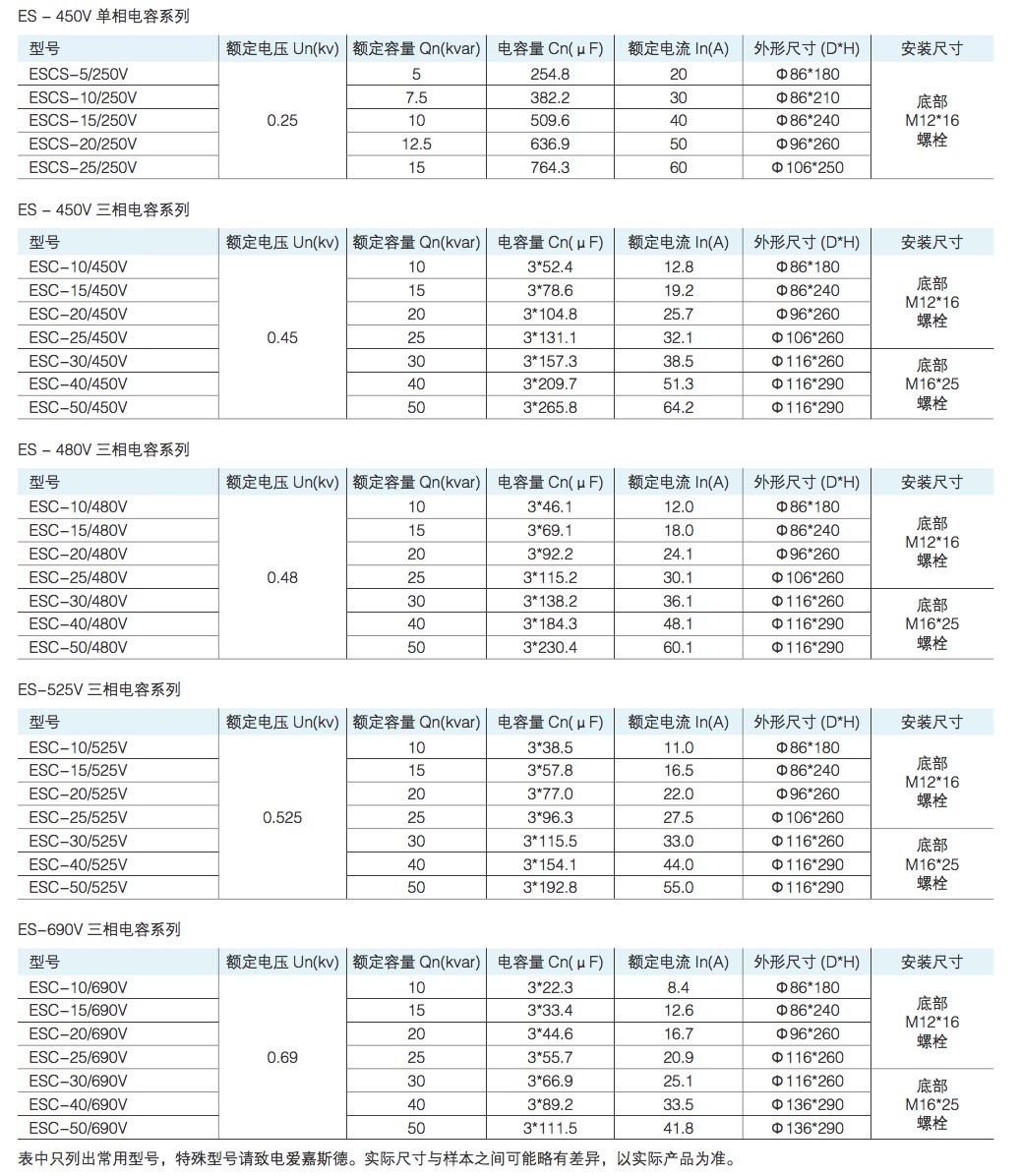 全新 ES 系列自愈式电容器由多个纯干式芯子组成,内部设过压、过流保护,全新的设计使自愈能力 更强、寿命更长、温升更低、抗谐波及涌流能力更强。ES 系列电容器用于额定电压 1kV 及以下,频 率为 50/60Hz 的交流电力系统中,用来改善电网质量,提高功率因数,降低线路损耗。